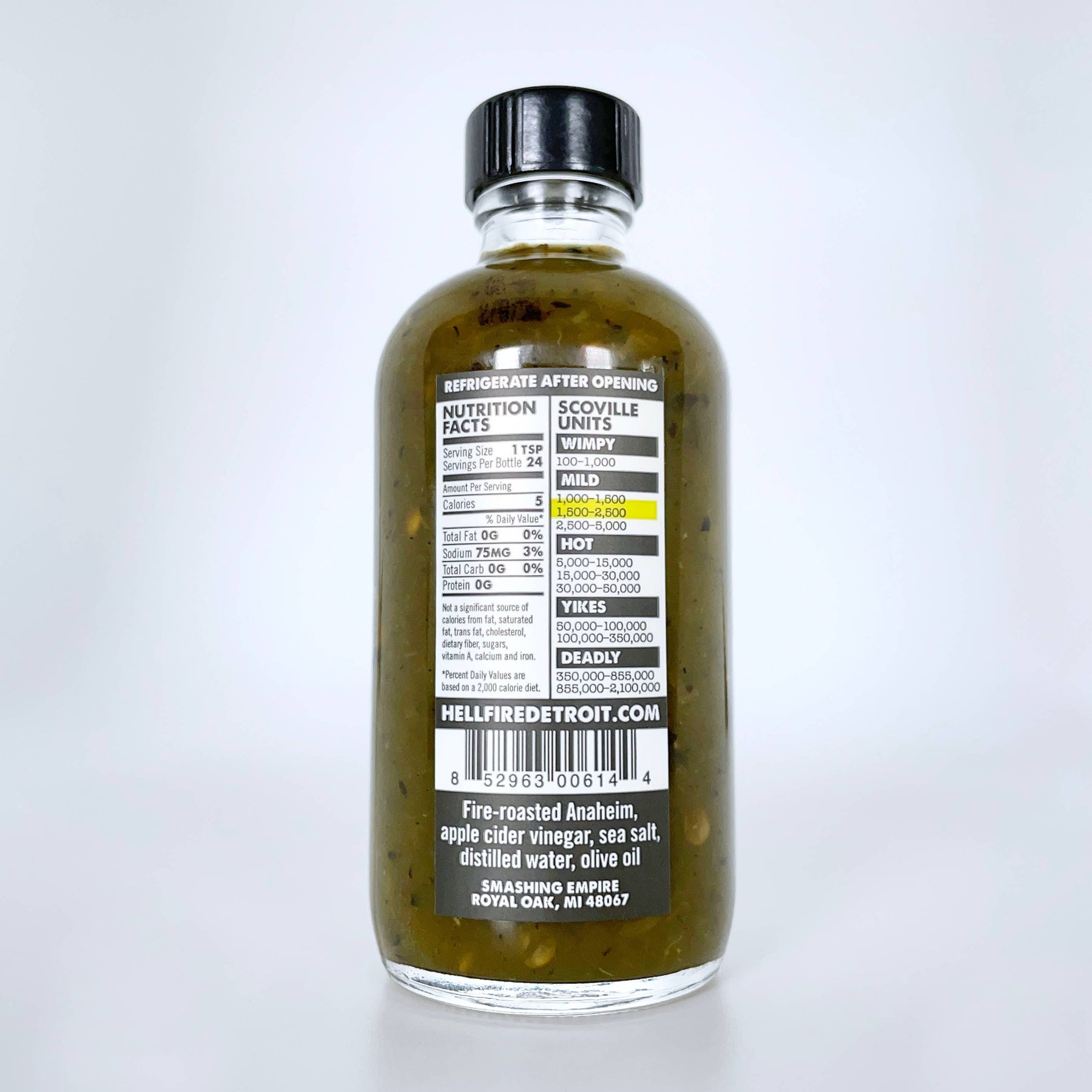 Fire-roasted Anaheim, apple cider vinegar, distilled water, olive oil, sea salt
