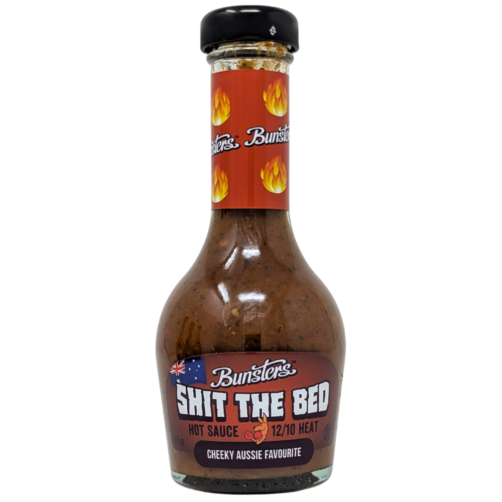 The same amazing Shit the Bed recipe but with twice the amount of Scorpion Chillies so it will silence even the loudest: “Yeah nah it’s not even that hot” bros. We retained the indescribable trademark “Bunsters Flavour” of floral and punchy chillies, a mix of citrus, veggies, coriander, garlic and ginger and added a brutal 99,000 Scovilles of Scorpion Burn into the mix. There isn't a super hot sauce this delicious on the market.