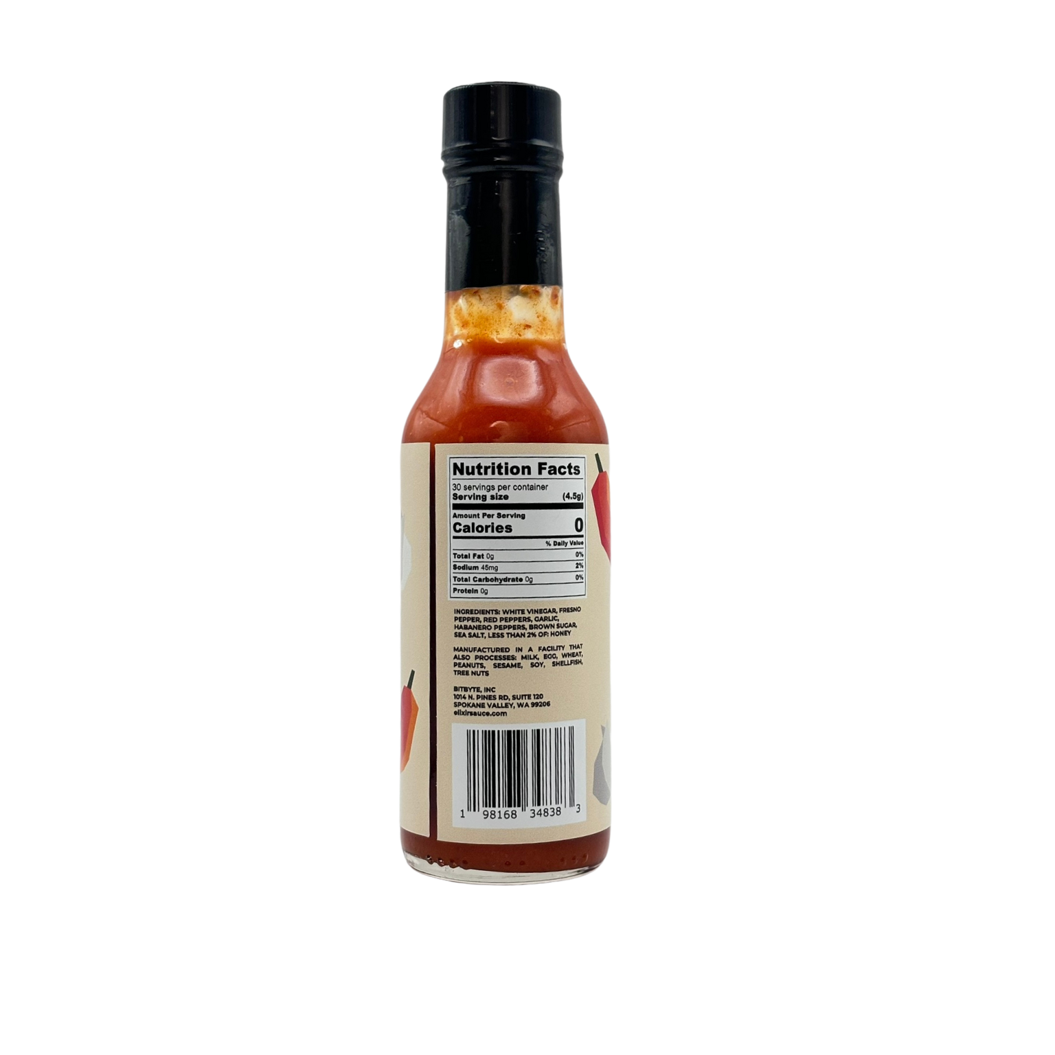 White Vinegar, Fresno Pepper, Red Peppers, Garlic, Habanero Peppers, Brown Sugar, Sea Salt, Less Than 2% Of: Honey.